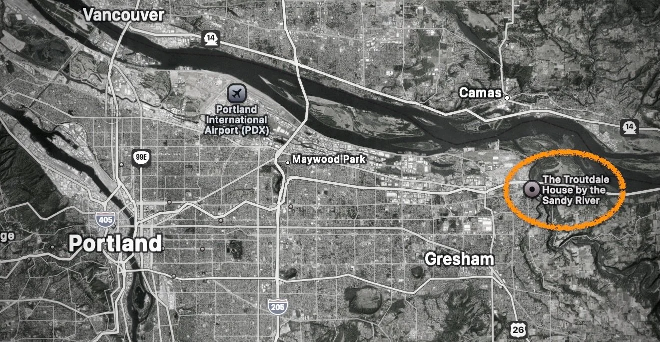Near PDX, about 13 miles (18 minutes) from Troutdale House.